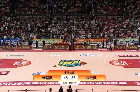 第二节比赛,诸暨队牢牢占据主动。半场结束,诸暨队48:36庆元队。
